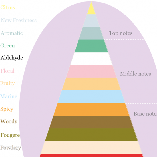 フルーティ、マリン、スパイシー、パウダリー、ムスキー、レザー