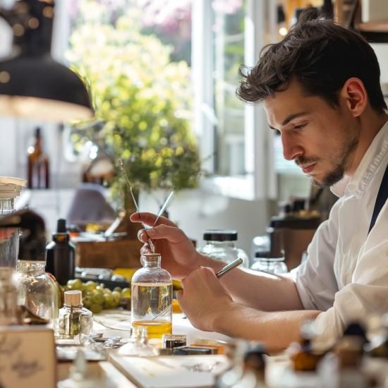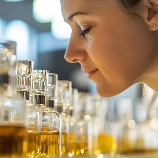 【FRAGRANCE DESIGNコース】は、様々な香料を組み合わせて自身で香水の処方を作成できるようになることを目指す上級者向けプログラムです。前半と後半、それぞれ1年かけて必要な知識と技術を習得していきます。